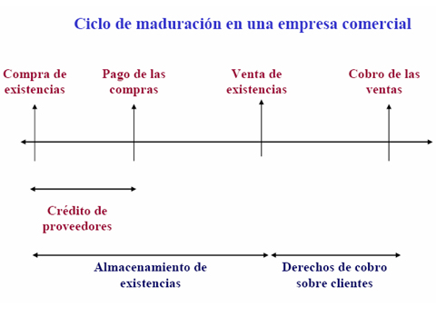 El circulante de una empresa engloba las partidas de activo y pasivo que están vinculadas al 'ciclo de explotación' o ciclo 'dinero-mercancía-dinero', que viene a ser el tiempo que tardamos en recuperar el dinero invertido en la adquisición de los bienes que se consumen en la actividad productiva. Es el denominado Periodo Medio de Maduración Un control adecuado de este concepto es vital. Dicho periodo se obtiene mediante la suma de distintas subfases o periodos medios: de pago a proveedores, de almacenamiento y/o transformación, de cobro.