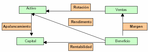 Esta fórmula, la podemos desgranar entre el Margen (el beneficio que obtengo de las ventas) y la Rotación (el número de veces que con las ventas cubro los elementos necesarios que me han ayudado a conseguir estas ventas, el Activo). El desglose en estos dos ratios me permite apreciar que para incrementar la rentabilidad económica de mi negocio, un bajo margen me obligará a rotar mucho, es decir, a vender mucho para poder cubrir el activo y viceversa.