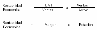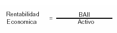 Lo primero que hemos de estudiar son los diversos tipos de rentabilidad. Primero de todo, tenemos la Rentabilidad Económica que relaciona el beneficio bruto que genera el negocio (Beneficio Antes de Impuestos e Intereses, BAII) y los Activos necesarios para conseguireste beneficio.