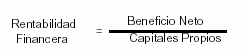 La Rentabilidad Financiera, nos muestra el beneficio neto generado en relación con la inversión que han hecho los propietarios de la empresa. Por tanto, nos muestra la rentabilidad por euro invertido.