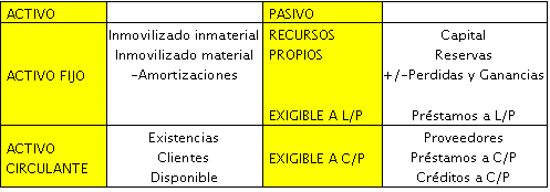 - PATRIMONIO NETO (o Neto Patrimonial o Fondos Propios o No Exigible), constituido por el capital de la empresa, sus reservas, sus fuentes de financiación propias